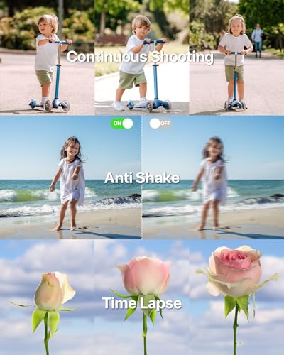 【Portable Multifunction Camera & Easy to Operate】This portable compact camera is very lightweight and can be carried anywhere in your pocket, easy to use and ideal for beginners, children and teenagers. This versatile photo camera equipped with 16x zoom, 20 filters, fill light, anti-shaking, self-timer,continuous shooting,date stamp,time-lapse shooting, smile capture, internal microphone and speaker (recording sound video). Perfect for your daily photo needs.
