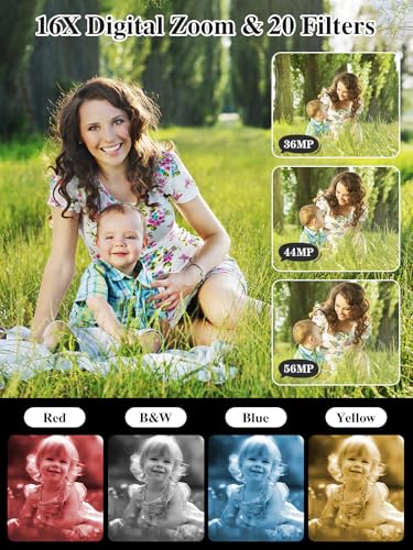【2025 Upgraded Digltal Camera】This camera uses the latest & advanced CMOS chip, 56 MP quality images & FHD 1080P quality videos,there is also a built-in fill light to help you take high quality pictures even in low light&dark settings.This camera is an ideal thing for kids, adults, everyone.