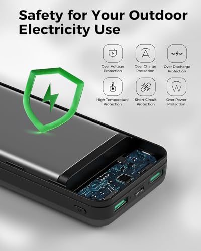 Multiport Output: The mobile phone portable power banks for iPhone is equipped with 2*USB*A and 1*USB-C (input/output), which can charge 3 devices at the same time, can be used as a travel, camping essentials.