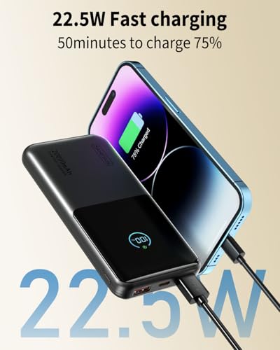[Blazing-Fast Charging to Beat Battery Anxiety] Equipped with advanced PD & QC fast-charging tech, this power bank delivers up to 22.5W high speed. Charge your i-Phone 17/16 or Sam-sung Galaxy from 0 to 50% in just 30 minutes—3x faster than standard chargers. Perfect for busy days out or long commutes, it keeps your devices juiced up in no time.