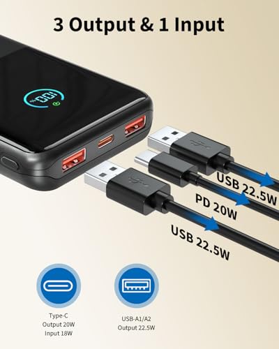 [Multi-Device Charging for the Whole Crew] With 1 USB-C port (input/output) and 2 USB-A outputs, this power bank can charge up to 3 devices simultaneously. It’s fully compatible with i-Phone 17/16/15 series, Sam-sung, Android devices, i-Pads, AirPods, and more—no need to carry multiple chargers. Perfect for group outings or keeping all your gadgets powered at once