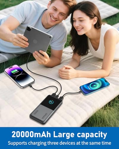 [Mighty Capacity in a Slim, Pocket-Friendly Design] Don’t sacrifice portability for power! Our 20000mAh battery pack offers up to 2.5 full charges for an i-Phone 16 or 2 for a Sam-sung S24, yet its sleek, compact build fits easily into your bag, purse, or even pocket. Ideal for travel, festivals, or family trips—power on the go without the bulk.