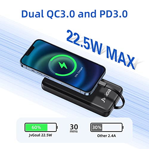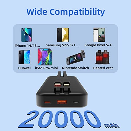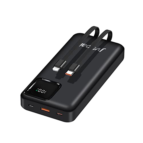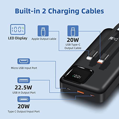 Portable Charger 22.5W 20000mAh Power Bank PD3.0 QC4.0 Fast Charge USB C in & out External Battery Pack, With Built in Cables Portable Phone Charger Compatible with iPhone Samsung Tablet (Black)