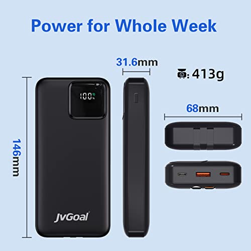 【What You Get】JvGoal 20000mAh Power Bank*1, USB to Micro charging cable*1, USB C charging cable, our 24-month worry-free warranty and friendly customer service.