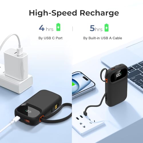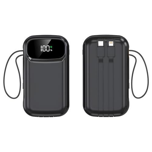 Power Bank 10000mAh Fast Charging Portable Charger with Built-in Cables PD22.5W Small USB C Battery Pack with 4 Outputs 2 Inputs Portable Backup Battery Compatible with iPhone iPad Tablets
