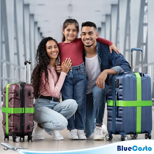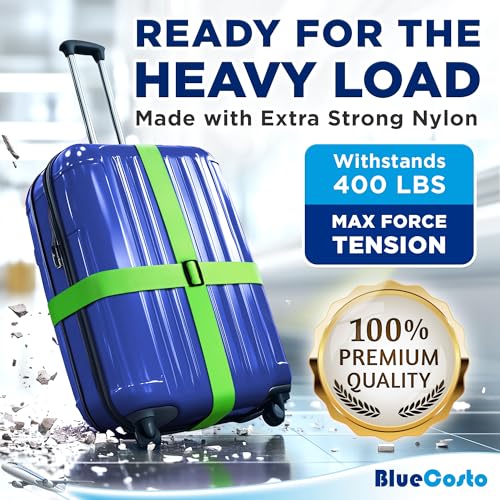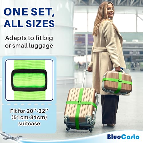 Luggage Straps for Suitcase – Neon Green, 1.9m x 5cm, 4 Pack – Strap for Suitcases – TSA Approved by BlueCosto