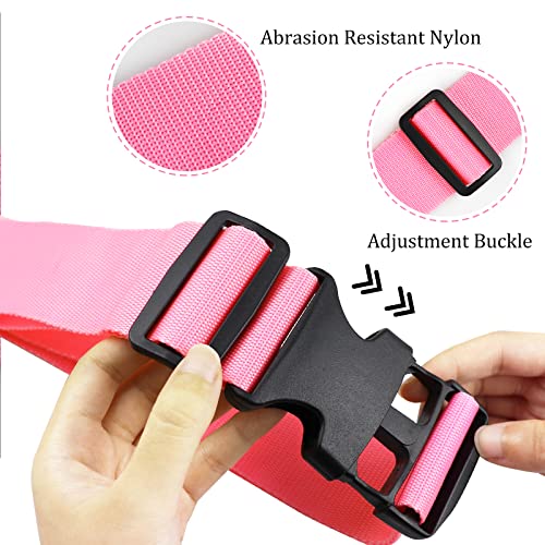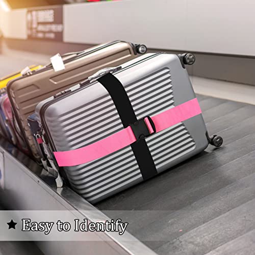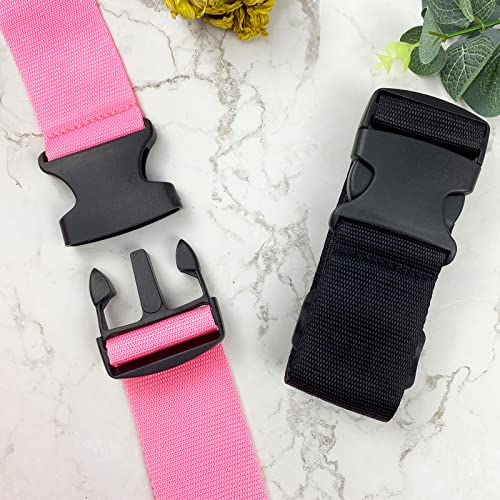 Luggage Suitcase Straps Set, Travel Accessories Thickened Luggage Belt with Quick Release Buckle, Adjustable Black Travel Luggage Straps for Suitcase Baggage (Black+Pink, 2 PCS Set)