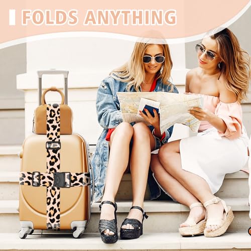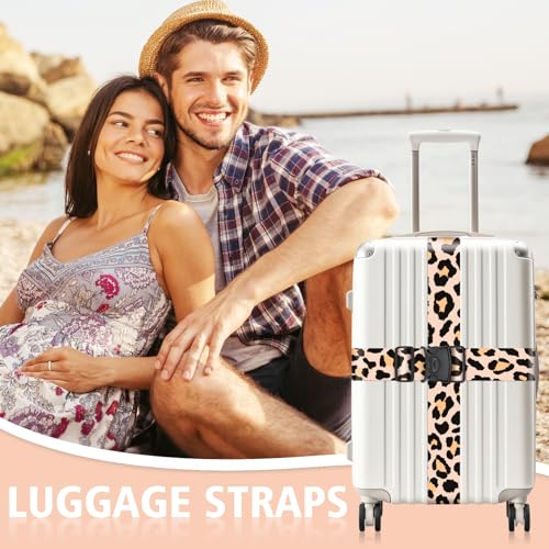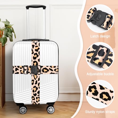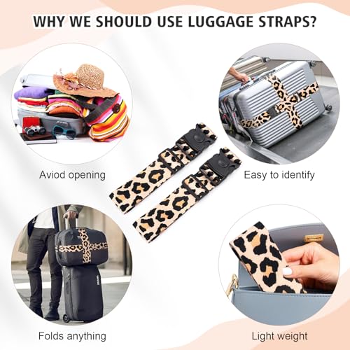 MOTONG 2 PCS Leopard Print Luggage Straps Adjustable Suitcase Straps Personalised Luggage Straps Suitcases Heavy Duty Suitcase Belts Thickened Luggage Belt with Quick Release Buckle