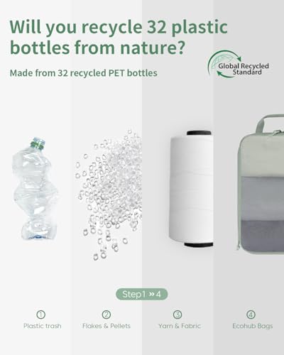 【Your Sustainable Travel Companion】: Our ECOHUB Packing Cubes are made from materials equivalent to 32 recycled plastic PET bottles and are GRS-certified. They’re machine washable, making it easy to maintain their appearance. Designed to fit carry-ons, backpacks, and more, these cubes are perfect for business trips, vacations, and home storage. For any inquiries, feel free to contact us.