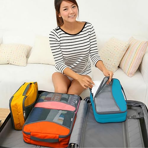 【A Packing Cube For Packing Bags】Pack like a Pro with wrinkle free clothes storage. No more messy travel kit in your clothes bags with this travel organiser. The travel packing cubes mesh top panel allows you to see travel clothes in a glance. A double zipper engineered to open wide. Webbing handle for easy carrying of luggage cubes. Packing cubes as carry on luggage: check in baggage over the weight allowance, the clothes organiser becomes cabin hand luggage reducing excess baggage charges.