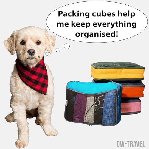 OW-Travel Packing Cubes for Suitcases (4Pcs) Easy to Organise Clothes Storage Dividers with Suitcase Organiser Bags. Luggage Organiser Bags. Packing Cubes for Backpack Suitcase. Holiday Essentials