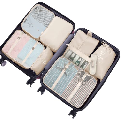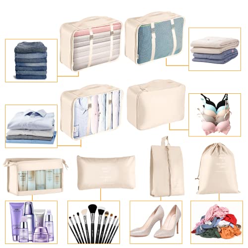 Packing Cubes for Suitcase – GEEDIAR 11 PCS Packing Cubes Travel Luggage Organizers Bag Waterproof Travel Essentials Bag Clothes Shoes Storage Bags(Beige)