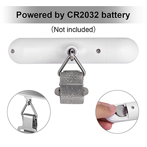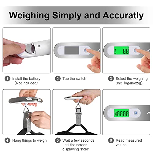 Feature:-High Precision Readings: Luggage weighing scales are hanging digital scales with high precision readings.-Backlight Display: Green LCD backlit display for easy and easy reading.-Weighing Lanyard: Grey webbing.-Weight-bearing Range: The weight of the luggage can not exceed 110lb/50kg.-Easy To Carry: The product is light in weight and small in size, easy to carry.-Function: lock, automatic shutdown, LCD backlight display, one-key peeling, low battery prompt, overload prompt, load bearing 50kg, graduation value 10g.Specification:-Material: 201 Stainless Steel-Product Size: 16*3*3.5CM-Product Weight: 120g-Product Color: SilverList of Packages:-Gray Webbing Green Backlit Luggage Scale*1-NO Battery-Manual*1-Color Box*1Notice: -We are committed to bringing customers a pleasant shopping experience. Please feel free to contact us if you have any questions. We will actively provide you with solutions and promise to bring you 100% satisfaction service.
