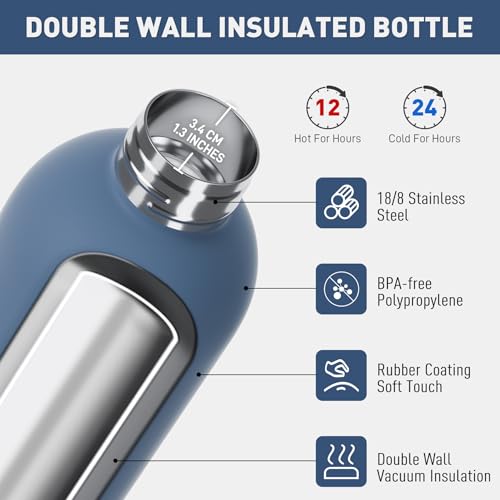 Double-wall insulation: The small insulated water bottle benefits from double-wall vacuum insulation – which keeps cold drinks cold for up to 24 hours and hot drinks hot for up to 12 hours.