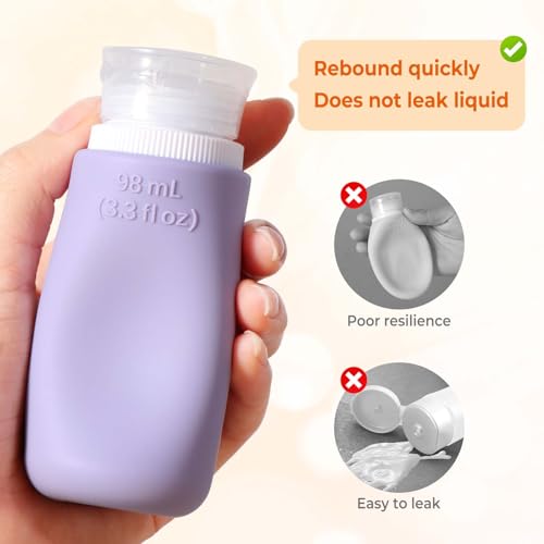 Food-Grade Silicone Construction: Diboniur’s flexible silicone travel bottles withstand repeated squeezing without cracking. The smooth interior cleanly dispenses thick shampoos, creams and serums with zero residue