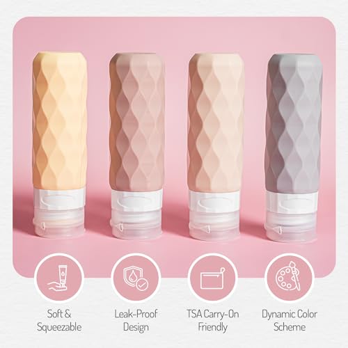 😊 4 Pack, 90ml Travel Bottles – The pack includes four travel size bottles for toiletries in different vibrant colors. The varied colors not only add a fun touch to your travel kit but also help you easily identify the contents of each bottle. Say goodbye to the confusion and hello to effortless packing!