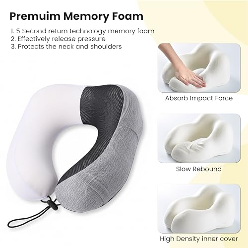 【360° MEMORY FOAM NECK & HEAD SUPPORT 】Ergonomic, slow-rebound memory foam travel pillow cradles your neck for full 360° neck & head support, reducing stiffness on long flights. It will rebound slowly in 5 seconds. Perfect as a plane pillow, neck support pillow for adults who want true travel neck pillows for adults comfort. Note: Do not wash or expose the foam, simply place it in a well-ventilated area.