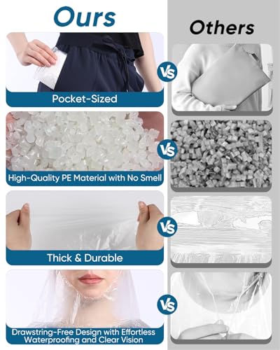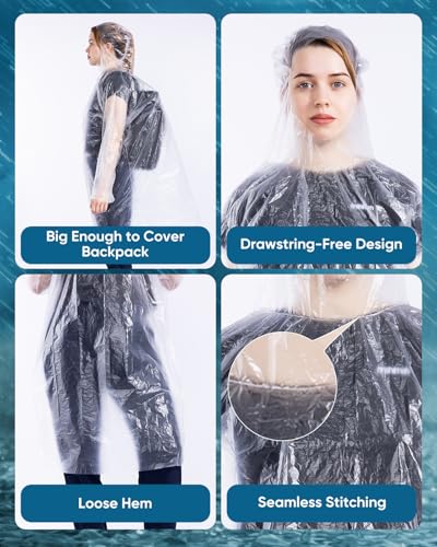 50/100 Pack Disposable Rain Ponchos with Hood for Adults, Family Pack Raincoats Bulk for Women and Men