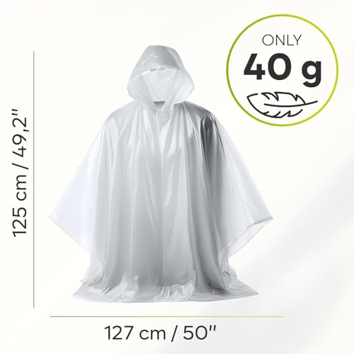 ZENO Rain Poncho Waterproof Adult – Festival Poncho – Waterproof Poncho – Disposable Poncho Clear with Hood – Emergency Poncho for Hiking, Cycling, Camping, Concert – Poncho Pack of 4