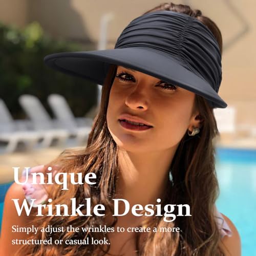 DRESHOW Women Visor Sun Hat Wide Brim Hat Adjustable Foldable Ponytail Beach Hat Summer UV Protection Outdoor Cap UPF 50+