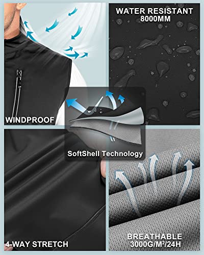 33,000ft Men’s Lightweight Softshell Gilet, Windproof Waterproof Outerwear Vest Gilets Sleeveless Jacket for Cycling Running Hiking Golf Travel