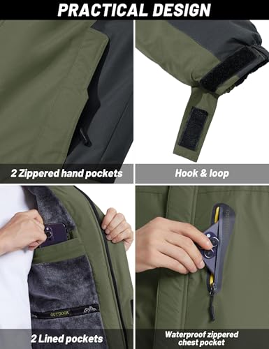 TACVASEN Men’s Waterproof Hiking Fleece Jacket Warm Outdoor Skiing Ice Skating Hoodie
