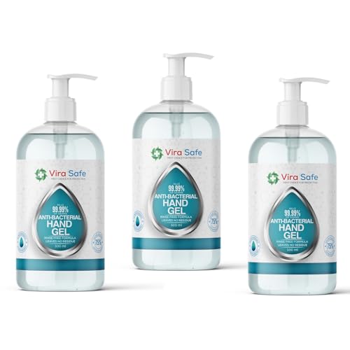 (PACK OF 3) – 500ml Vira Safe Sanitiser Removes 99.9% of germs and bacteria, 3 x Vira Safe Hand Sanitiser– Trusted UK Brand – Manufactured by a reliable UK-based brand, our Vira Safe 500ml Hand Gel is crafted to meet the highest quality standards. A large half-litre bottle ensures long-lasting use, making it ideal for homes, offices, warehouses, and businesses.