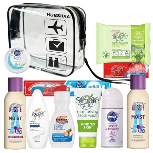 Travel Toiletries Set for Women | Mini Toiletries | Travel Size Toiletries Women Kit For Holidays, Vacation, Hospital, Maternity with Hubsidia Airport Security Approved Liquids Bag